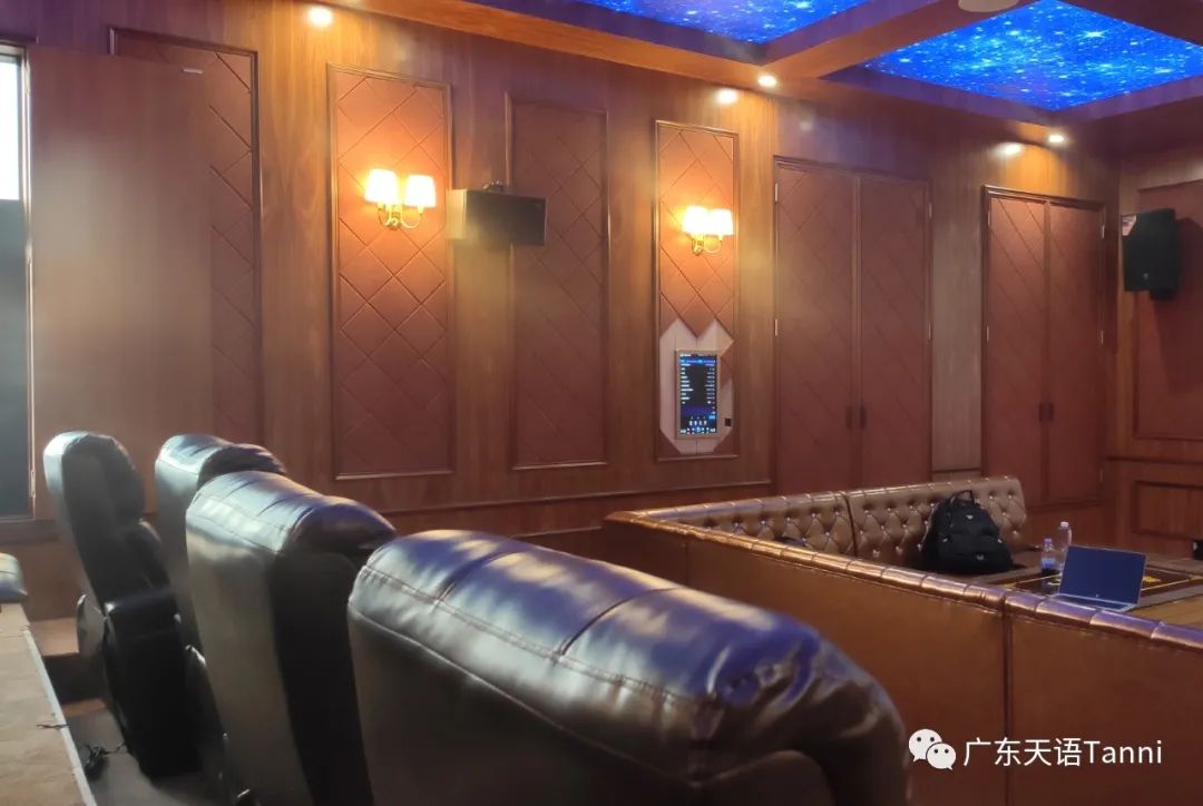 金塘罗府项目是一套7.1的智能影音系统,集灯光控制于一体,根据不同的影音模式可自动切换不同的灯光效果。