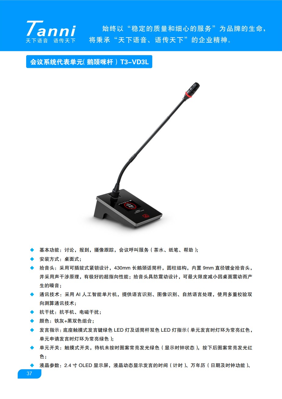 T3-VD3L会议系统代表单元(鹅颈咪杆)