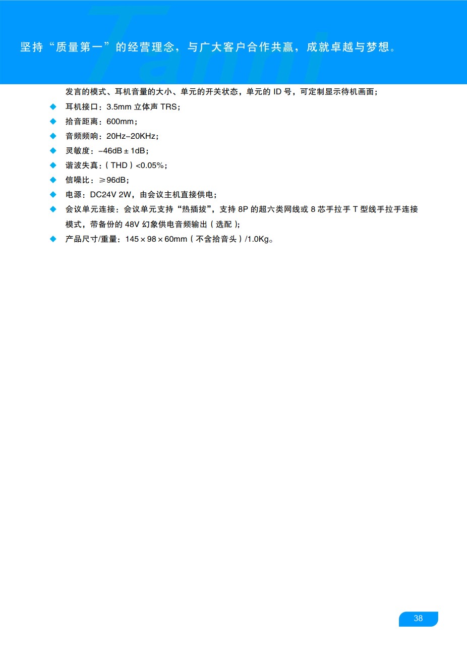 基本功能:讨论,报到,摄像跟踪,会议呼叫服务(茶水、纸笔、帮助)。