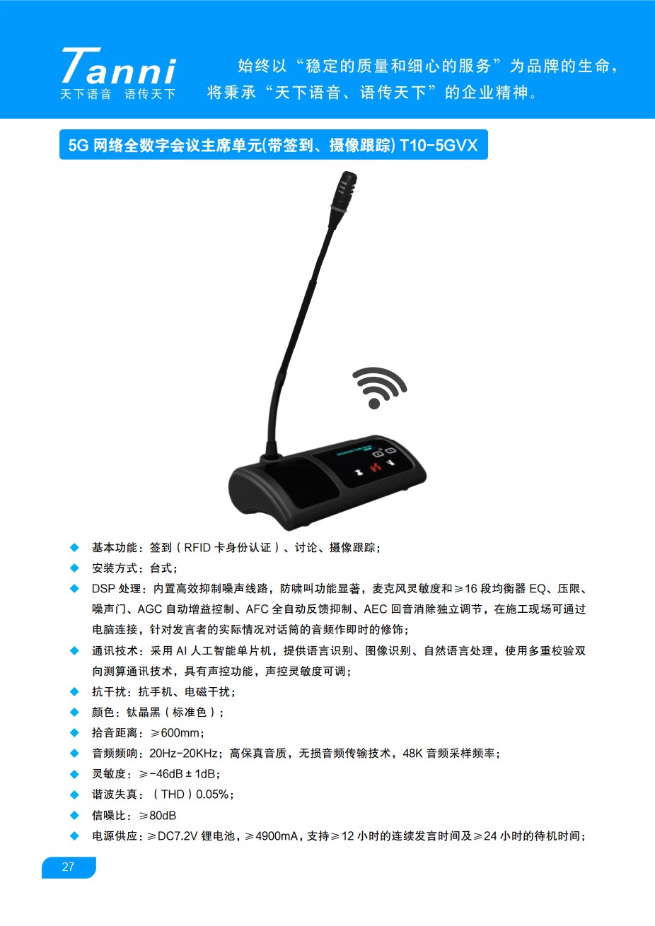 T10-5GVX 5G网络全数字会议主席单元(带签到、摄像跟踪)